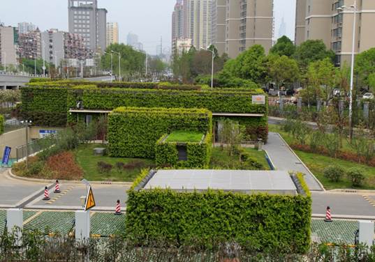 整座中心外立面全部采用垂直绿化技术。