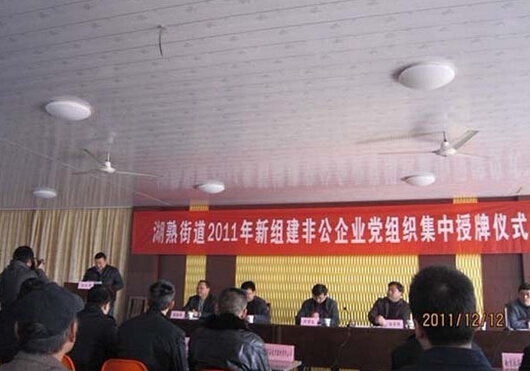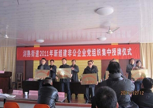 2011年12月12日,我公司与湖熟其他35家非公有制企业党员共同参加了由江宁区组织部和湖熟街道工作委员会联合举办的“湖熟街道2011年新组建非公企业党组织集中授牌仪式”。