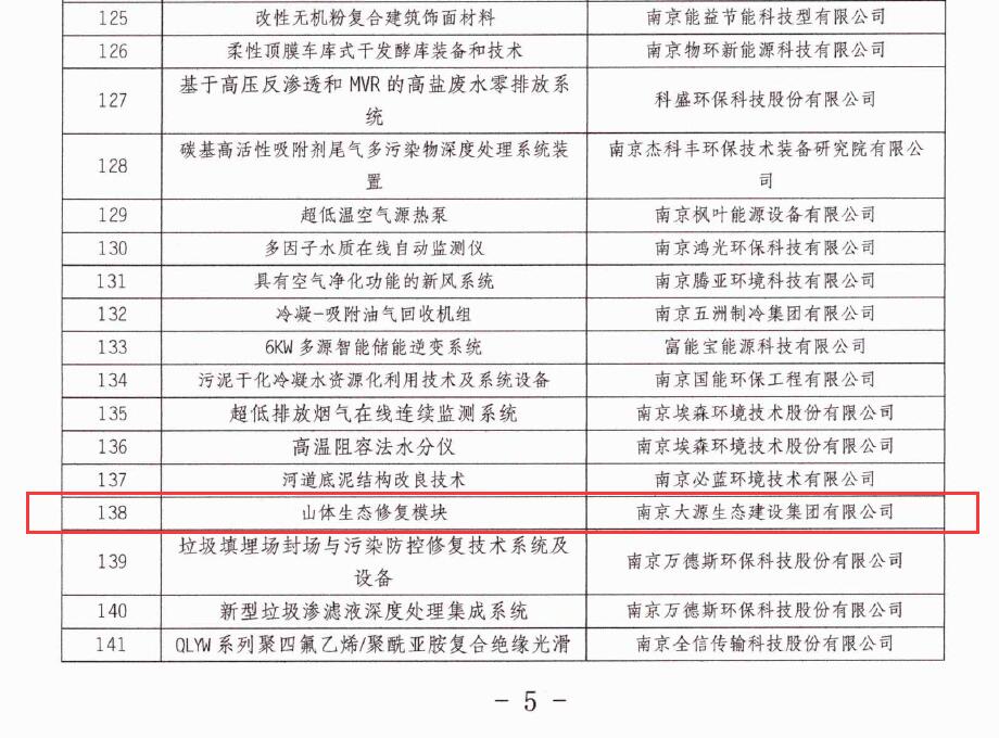 2019年4月,经过南京市各区(开发区)经发局严格的考察和审批,首批创新产品推广示范推荐目录名单出炉。南京大源生态建设集团的山体生态修复模块产品,经过各级专家的考察审批,被南京市政府列入2019年首批创新产品推广示范推荐目录。